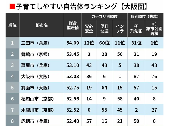子育てしやすい自治体ランキング2025(大阪・京都・兵庫・奈良)で、三田市は1位でした。